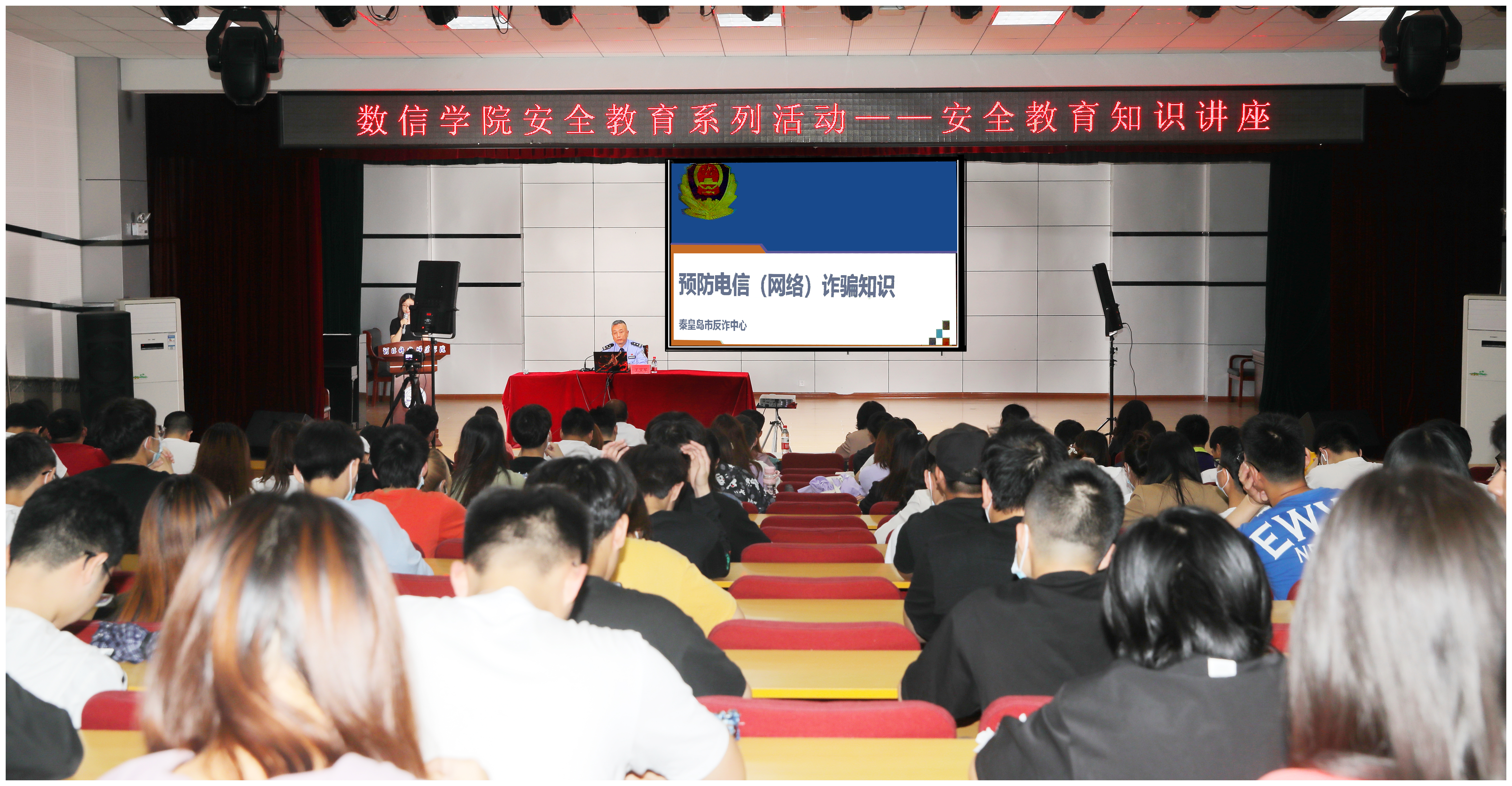 为进一步增强学生网络安全防范意识,推动校园安全文化建设,6月9日晚7点,数信学院于逸夫楼一楼多媒体功能厅开展第一届“共建网络安全,共享网络文明”安全教育系列活动——网络安全教育讲座。本次讲座邀请秦皇岛市海港公安分局燕园派出所社区王宝军警官作为主讲人,面向beat365亚洲版官网全体学生作网络安全教育知识讲座,beat365亚洲版官网党委副书记、分团委书记、学工班主任、辅导员、班主任及各班级学生代表出席活动。