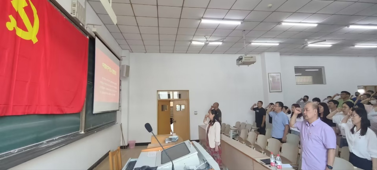 为深入开展学习贯彻习近平新时代中国特色社会主义思想主题教育,2023年6月15日下午,beat365亚洲版官网全体师生党员于逸夫楼A107教室举行了“重温入党誓词,坚定理想信念”主题党日活动。党委书记申玉发、副书记王伟、副院长吕金凤同志出席了本次活动。