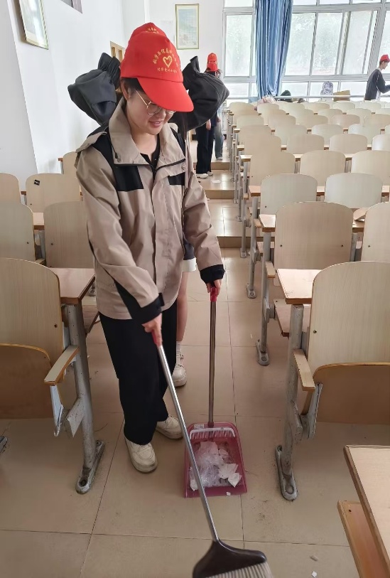 活动伊始,支部成员在教学楼教室整齐集合,党支部书记就活动流程、安全事项及分工安排进行详细部署。随后,支部成员兵分三路,高效投入服务:第一小组对校园电动车停放区展开全面规整,将随意停放的车辆归位至划线区域,引导学生养成规范停车习惯;第二小组深入教学楼,细致清扫地面、擦拭桌椅黑板、整理讲台设备,为师生营造舒心的学习环境;第三小组手持清洁工具,穿梭于校园主干道、花园及绿化带,清理落叶、纸屑等杂物,让校园角落焕发新颜。经过数小时的齐心协力,校园面貌焕然一新。