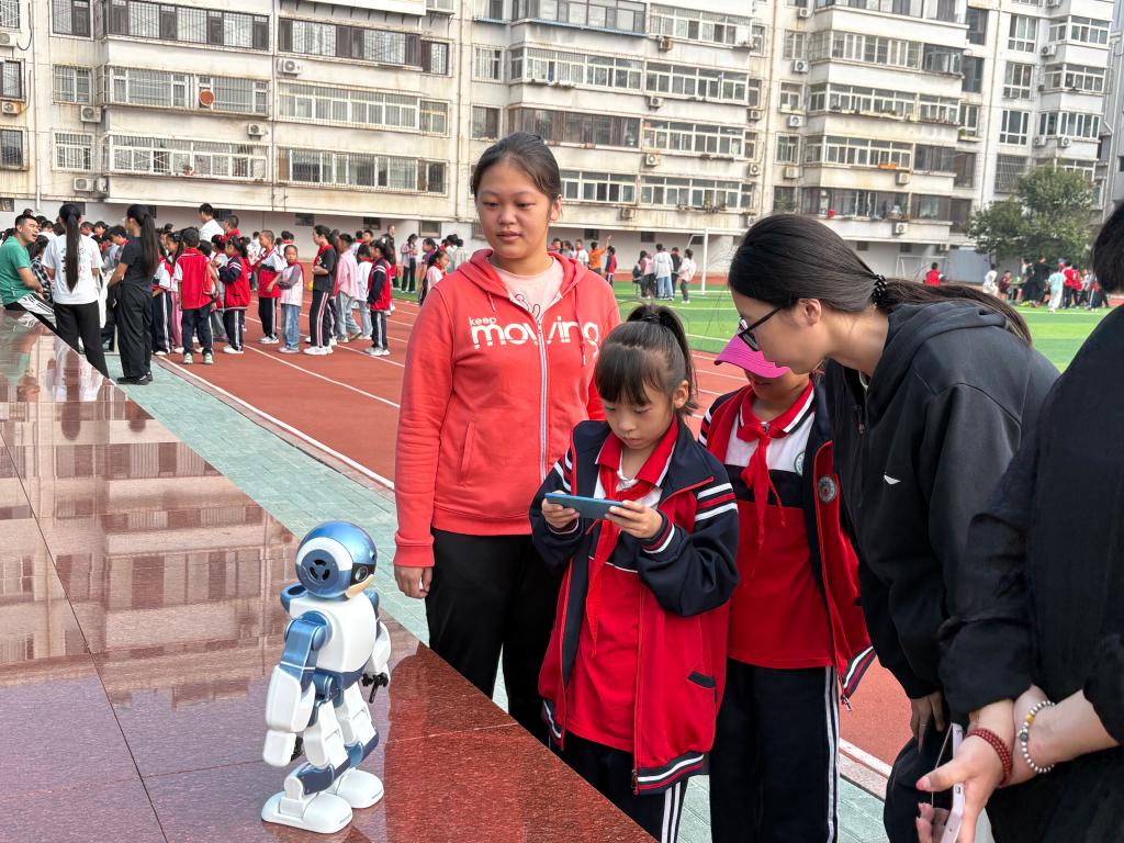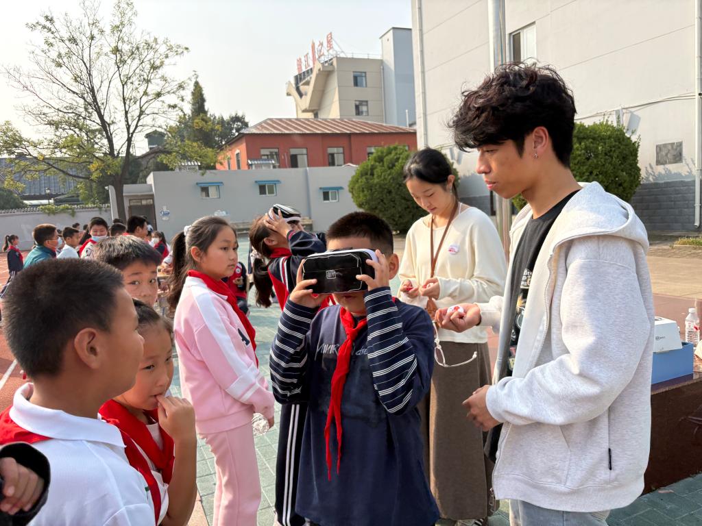 9月30日上午,beat365亚洲版官网物联网与数媒学生党支部、人工智能学生党支部的师生党员志愿者走进山海关兴华小学,为同学们带来一场沉浸式的科技启蒙盛宴。