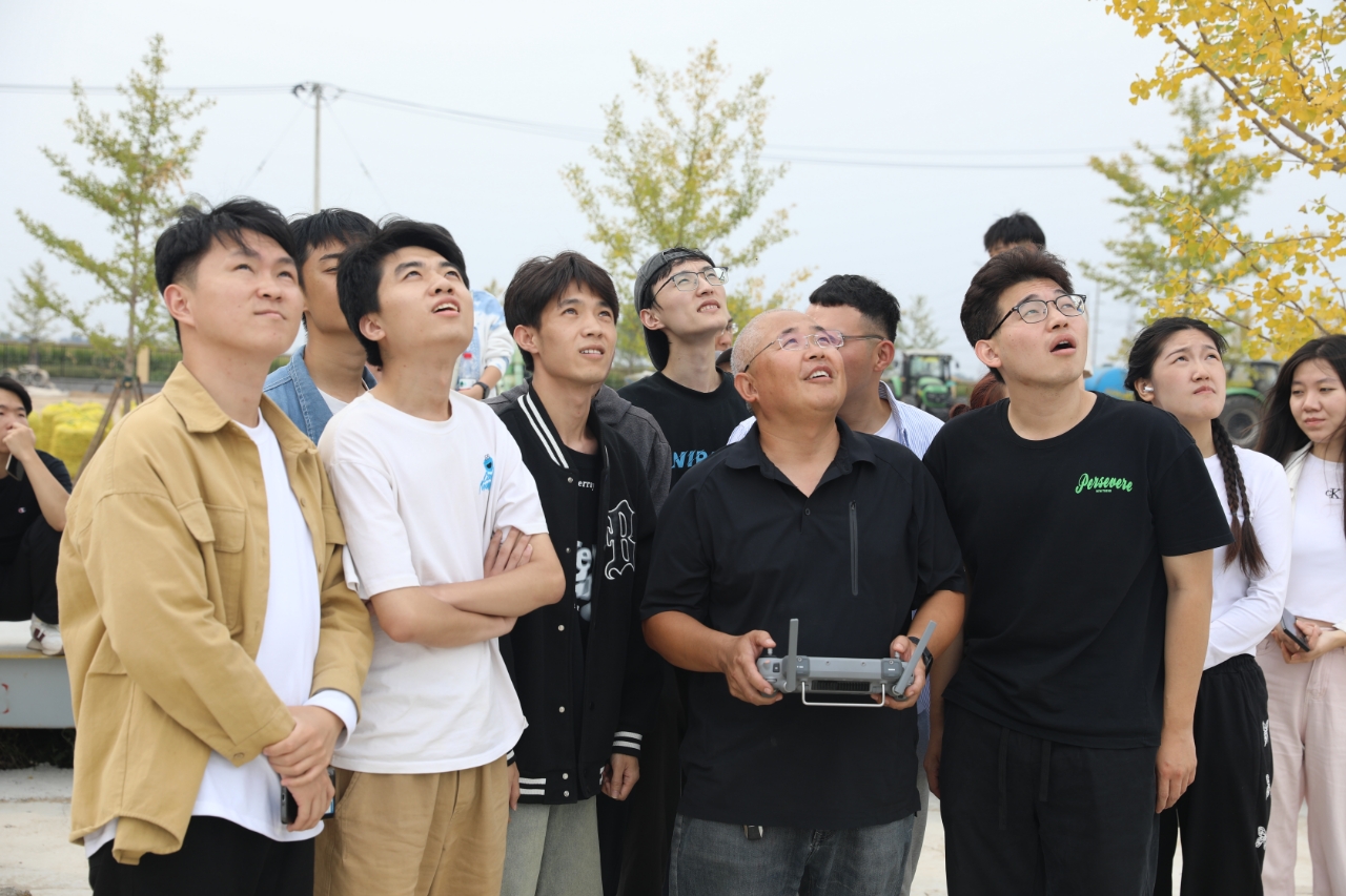 工作人员展示了全自动化农业设备,演示了全自动花生播种与收割设备、花生提取榨油设备,这些设备的应用大大提高了生产效率、提升了产品的质量和产量。此外,合作社还采用了无人机进行农药喷洒作业,实现了精准农业管理,减少了农药的浪费和对环境的污染,学生们在参观过程中表现出浓厚的兴趣,认真听取了技术介绍,积极与合作社的技术人员交流。