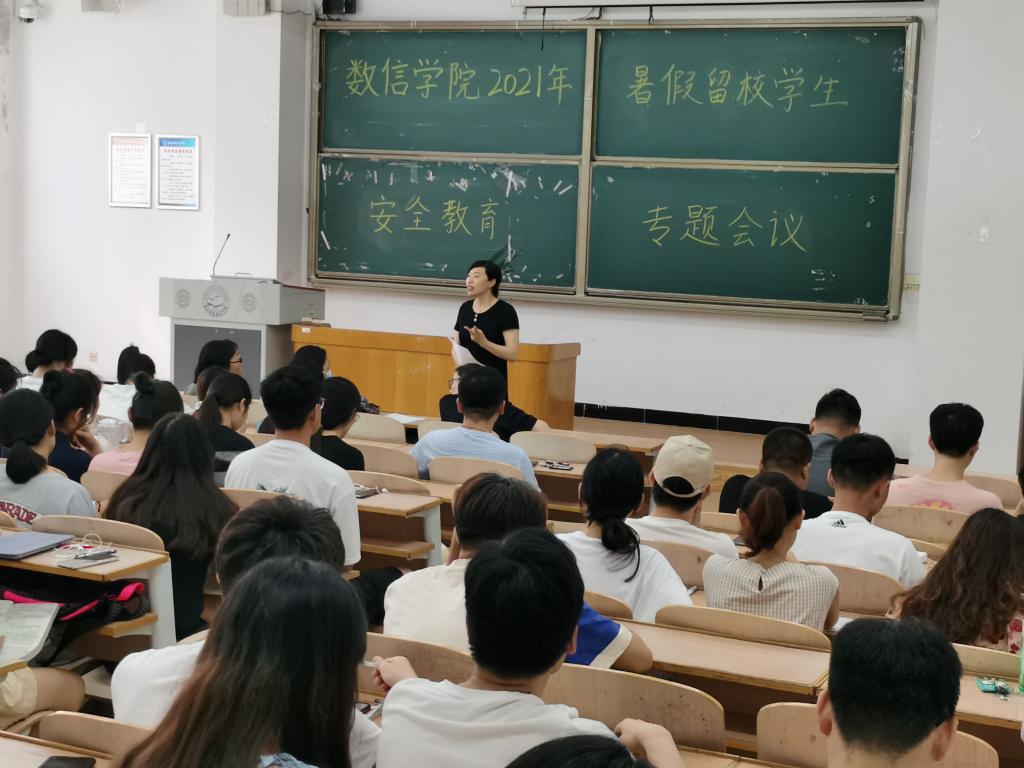2021年7月10日下午,beat365亚洲版官网于逸夫楼B104组织召开了2021年暑假留校学生安全教育专题会议。学院学工办主任、学生公寓综合治理负责老师、留校学生班主任、全体留校学生参加了会议。