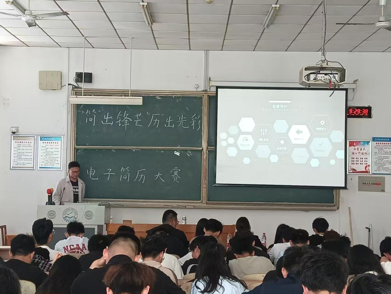 决赛现场高潮迭起,精彩纷呈。在演讲展示环节,选手们通过精彩的演讲和精心设计的PPT,配合生动流畅的讲解,向评委和观众展示了他们的简历创意与职业规划。每位选手的演讲都充满激情,有的结合动态设计展现个人优势,有的通过数据可视化突出实践经历,引得现场掌声不断。在紧张的评分间隙,主办方还设置了趣味抽奖环节,观众们踊跃参与,有14 位同学获得了精美的小礼品,现场氛围被推向高潮。最终,经过评委的综合评定,分别评选出一等奖、二等奖和三等奖得主,并为获奖选手颁发证书、拍照留念。