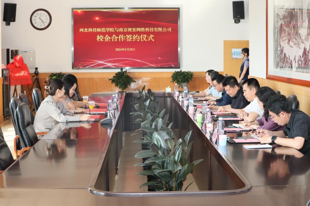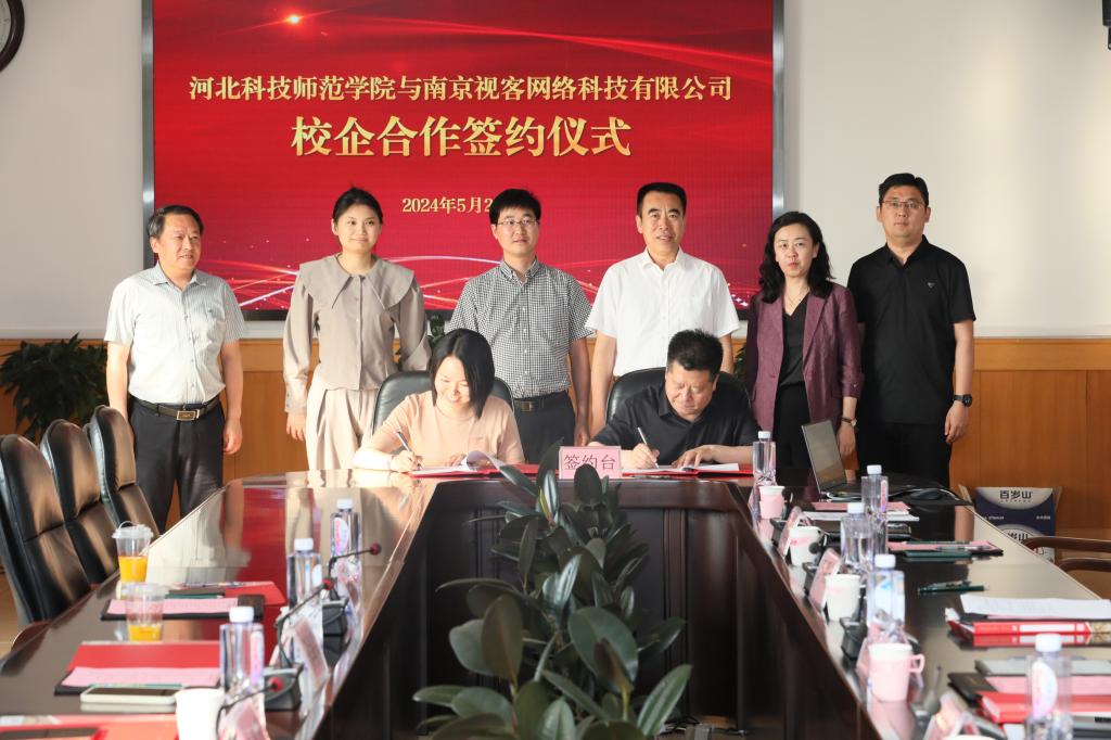 2024年5月28日,beat365官网与南京视客网络科技有限公司举行了校企合作签约暨基地揭牌仪式。学校党委常委、副校长冯瑞银,党委常委、副校长刘荣昌,南京视客网络与科技有限公司副总经理、组织与人力资源部负责人繆继红、眼镜圈运营部业务负责人张丹枫、组织与人力资源部COE朱茜茹出席活动。学校招生就业处处长于明来、教务处副处长孙成振、beat365亚洲版官网党委书记杨崇泽、院长赵立强、党委副院长王静参加活动。签约仪式由招生就业处负责同志主持。