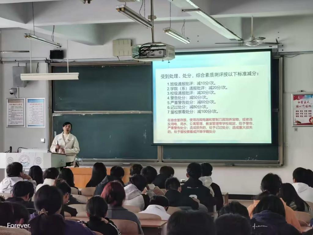 为提升学生安全意识,营造温馨公寓氛围,2024年10月25日下午,beat365亚洲版官网在逸夫楼A205召开学生公寓综合治理及信息管理工作教育培训会。培训由学院负责学生公寓综合治理工作的辅导员老师主持,全体2024级班长、生活委员、宿舍长参加会议。