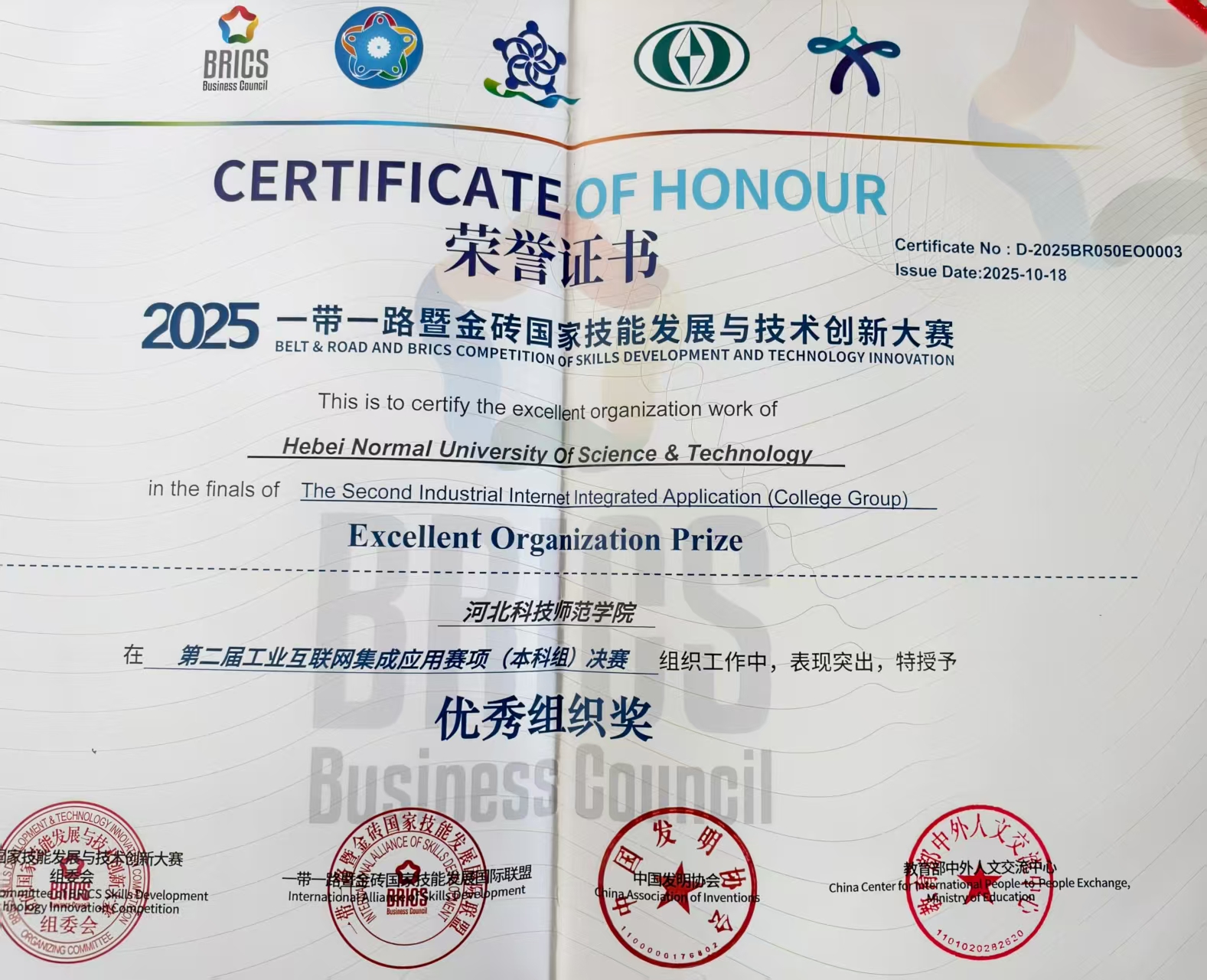 2025年9月14日,第九届“一带一路”暨金砖国家技能发展与技术创新大赛决赛在线上举行。大赛由金砖国家工商理事会中方理事会、一带一路暨金砖国家技能发展国际联盟、“一带一路”暨金砖国家技能发展与技术创新培训中心等单位共同承办,以“推进技能合作,赋能产业创新”为核心,吸引全国多所院校精英团队参赛。beat365亚洲版官网海联创新基地学子在赛事中表现突出,斩获佳绩。