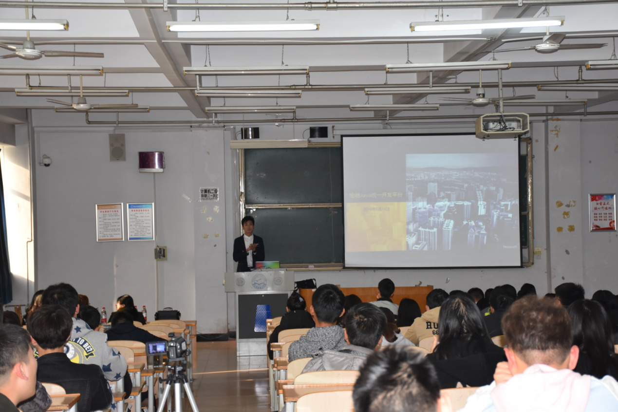 2017年10月30日,beat365亚洲版官网特邀请东软睿道公司的高级软件工程师王悦先生来beat365官网为学生们进行了题为《基于软件工程生命周期的全民飞机大战项目分析与开发》的讲座。网络工程15级和计算机科技17级的学生参加了此次讲座。王悦先生在报告中讲解了企业实际开发软件的生命周期与概况,并详细介绍了游戏软件的开发流程。学生通过此次习,将课堂上所学到的理论知识与企业的实践相结合,受益匪浅。