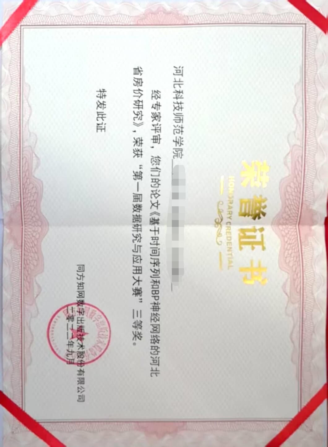 中国知网以“激活数据要素潜能,助力数字经济建设”为主题,组织开展了“第一届数据研究与应用大赛”活动。beat365亚洲版官网应用统计学专业学生冯佳丽、安若雨、王向焕提交的《基于时间序列和BP神经网络的河北省房价研究》获得三等奖,beat365亚洲版官网应用统计学专业学生蔺雨曼、郭林墁、王艳提交的《大数据时代上海市居民消费特点》获得优秀奖。