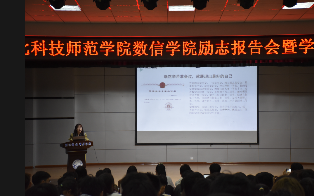 报告会邀请了河北省优秀学生干部、省三好学生、省优秀毕业生2019级物联网工程专业刘欣悦同学;国家奖学金获得者2019级数学与应用数学专业孙福秀同学;一等奖学金获得者、三好学生及优秀学生干部标兵、优秀共青团员标兵2020级网络工程荣甲范宝玥,科技2000级王超越、杨若琳等6名优秀学生代表,为2022级的学生分享了精彩的大学校园生活与学习、成长成才及考研、第二课堂等成功经验。