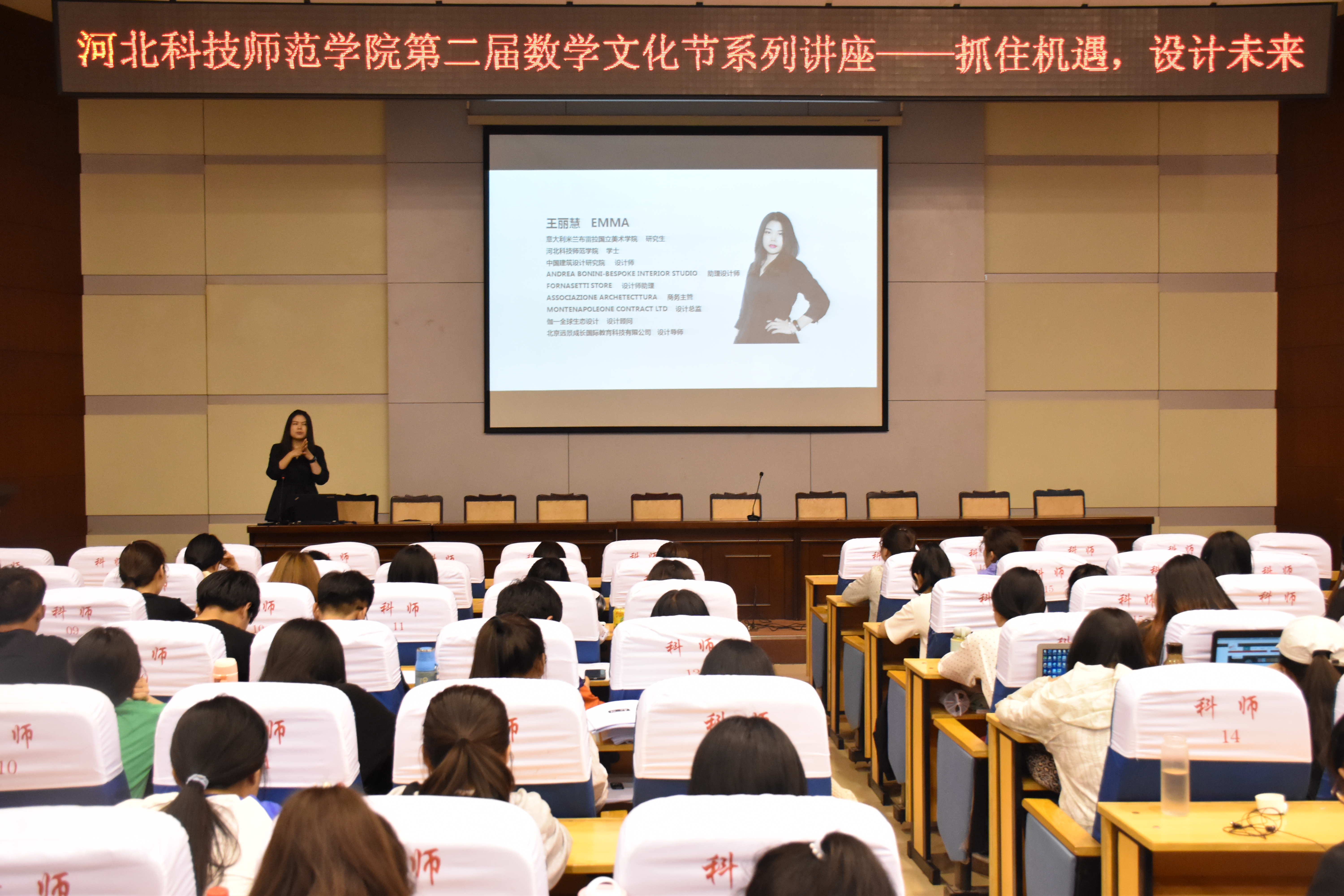 2019年5月16日下午,beat365亚洲版官网在秦皇岛校区学术交流中心举办了学校第二届数学文化节系列讲座。特邀中国建筑设计研究院设计师王丽慧作题为“抓住机遇,设计未来”的专题报告,beat365亚洲版官网的数学与应用数学、应用统计、计算机科学与技术、数字媒体技术等各专业师生400余人聆听了此次专题报告。
