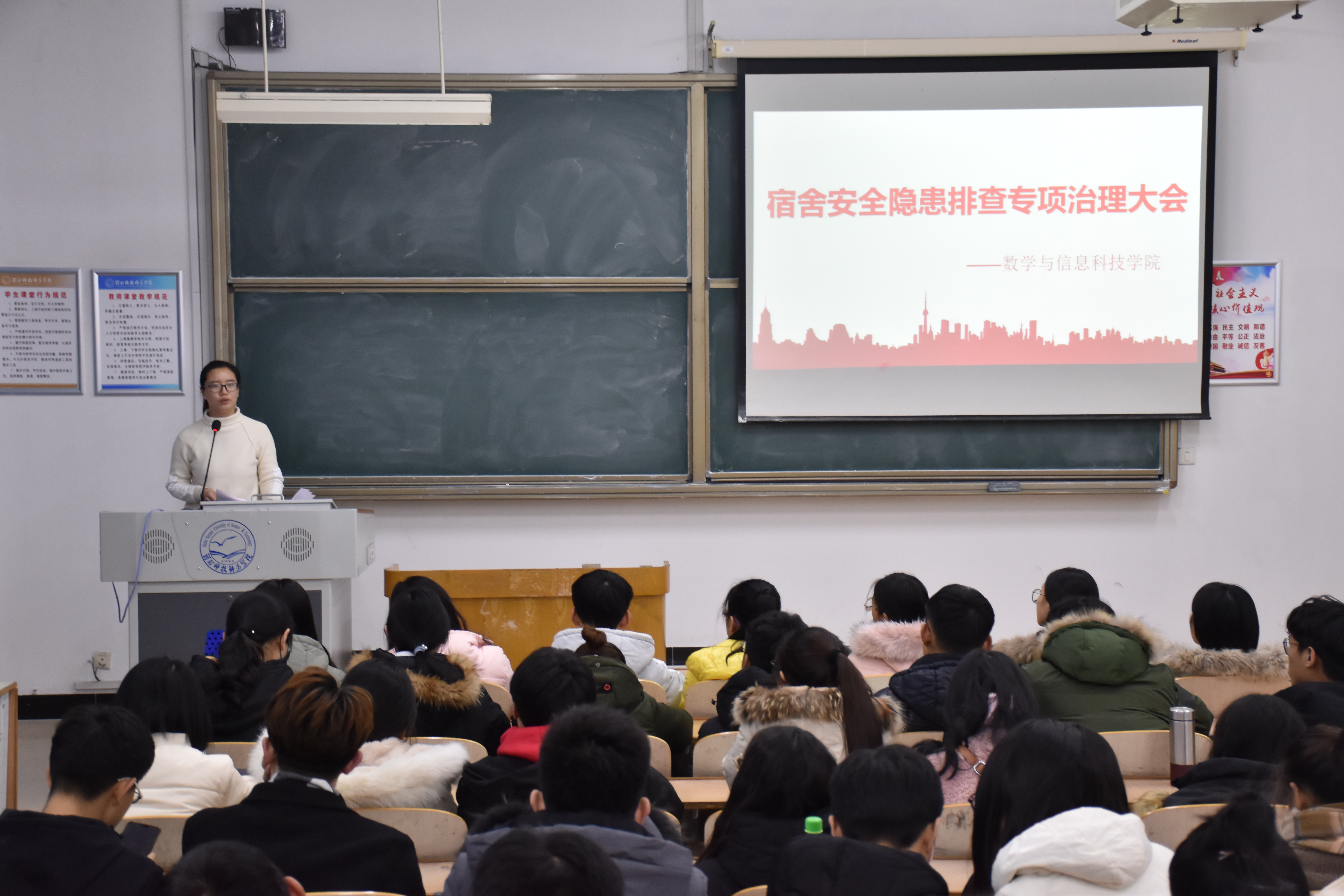 按照学校党委行政安排部署,贯彻落实上级加强校园安全严格管控相关规定要求,严防安全事故发生,保障每位学生人身财产安全,保障学校正常安稳的教学生活秩序,2018年12月7日晚七点,beat365亚洲版官网在逸夫楼A109召开了宿舍安全隐患排查专项治理大会,依法依规进一步加强学生宿舍安全管理。beat365亚洲版官网学工办相关老师、各班级生活委员参加了此次会议。